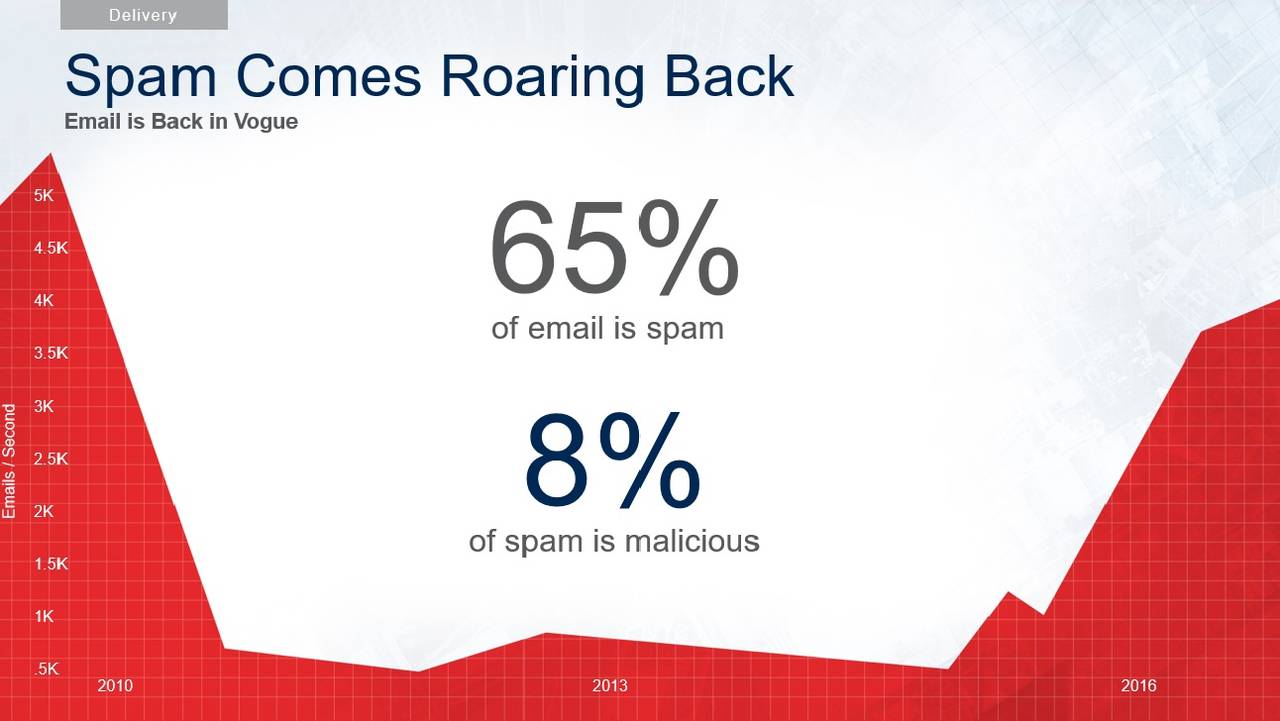 La curiosità è che si registra una recrudescenza di forme di attacco convenzionali, dall’adware allo spam: il 65 per cento delle mail sono spam e l’8 per cento dello spam contiene malware, “Segno – spiega ancora Philipott – della loro crescente sofisticazione”.