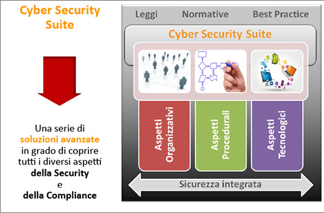 Nello specifico, il ciclo di vita di ogni soluzione viene determinata, ingegnerizzata e organizzata mediante servizi strategici di Security Advisoring inclusi nella Cyber Security Suite, un insieme di soluzioni avanzate in grado di coprire tutte le componenti della Security & Compliance sia organizzative sia procedurali o tecnologiche.