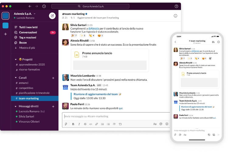 L’idea originaria al centro dell’evoluzione di Slack era andare oltre l’email. Da qui, la progressiva apertura a ogni canale di comunicazione, testo, voce o video a seconda delle necessità o delle preferenze. Tutti strumenti utili per favorire la ricezione da parte del destinatario e ottimizzare i tempi di avanzamento.