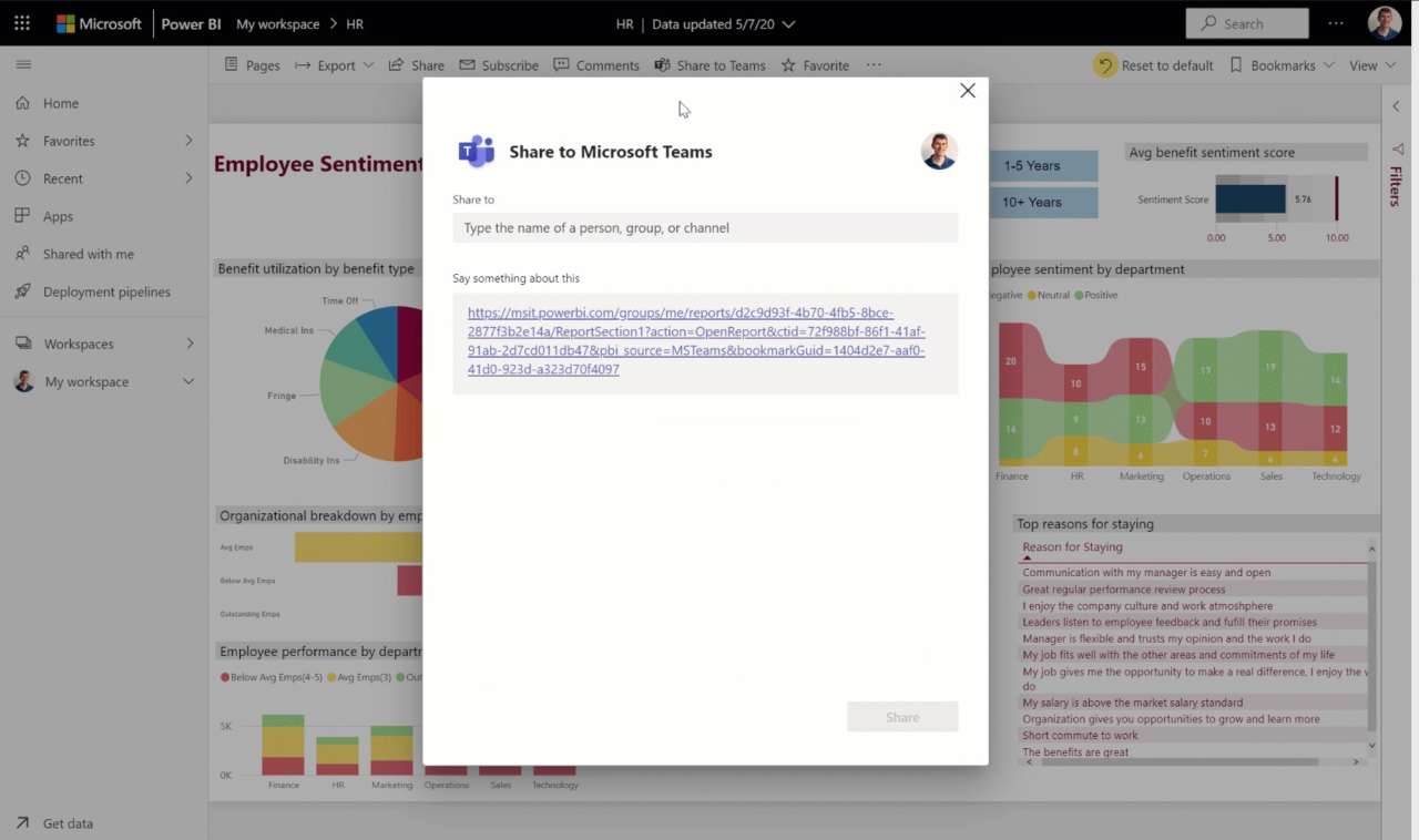 Per aiutare le organizzazioni a condurre conversazioni basate sui dati, Microsoft ha semplificato ulteriormente la condivisione dei report Power BI con Teams: è sufficiente selezionare il report da condividere e fare clic sul nuovo pulsante disponibile in Power BI. Verrà chiesto di selezionare l’utente o il canale a cui inviare il report, che verrà automaticamente pubblicato nella conversazione.