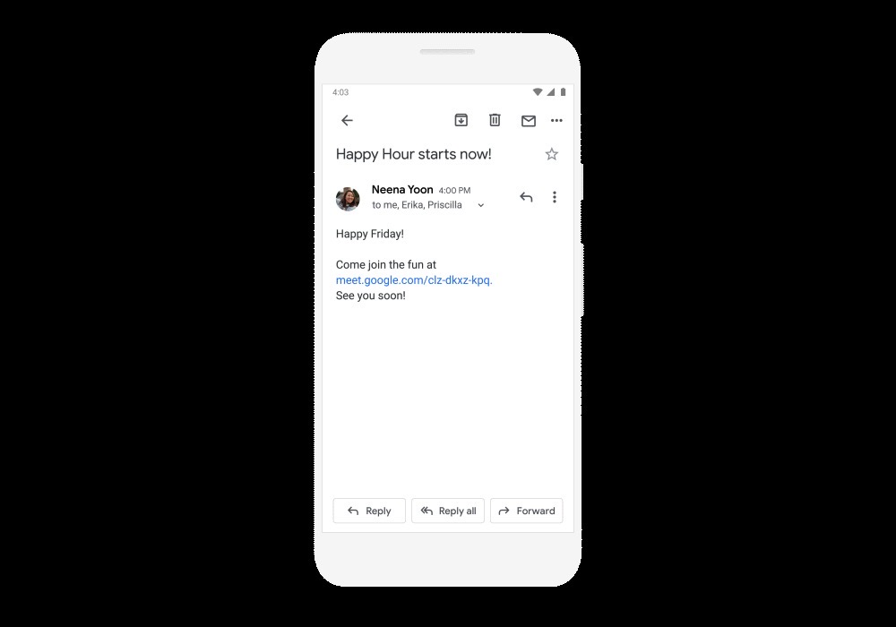 Con gli ultimi aggiornamenti in fase di roll-out, Google ha portato Meet, l’app e servizio di meeting video, all’interno di Gmail su Android e iOS, in modo che l’utente possa partecipare facilmente alle videoconferenze partendo dalla propria casella di posta elettronica.