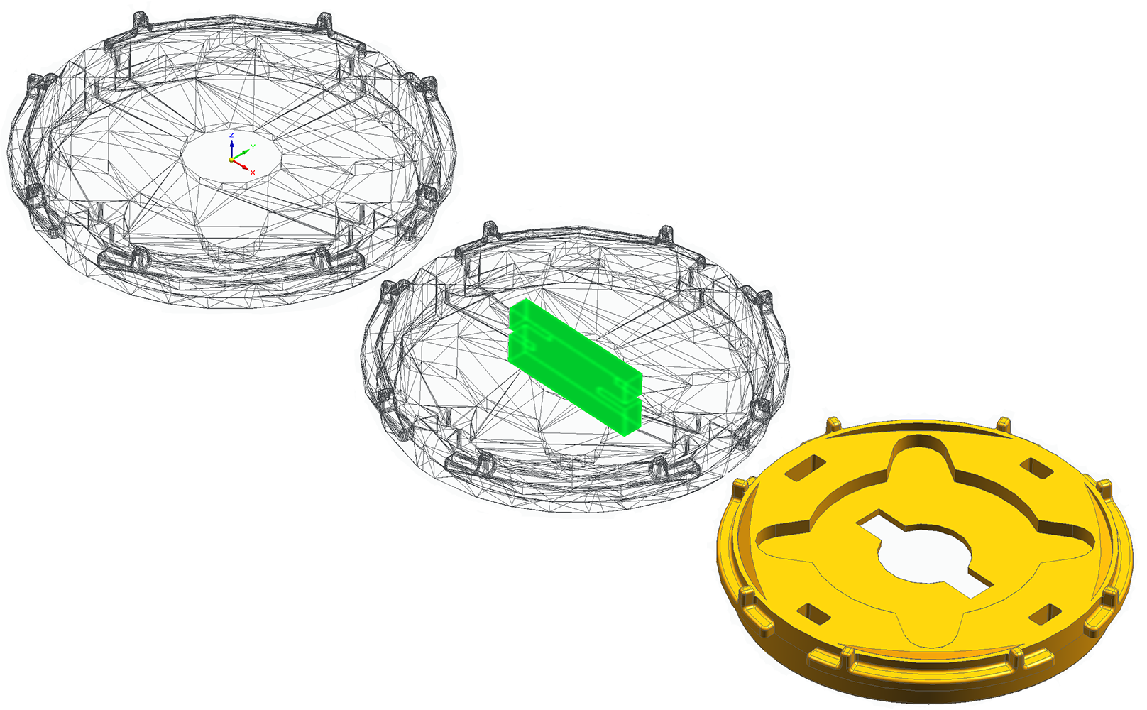 Il Convergent Modeling agevola notevolmente il lavoro su geometrie composte da un insieme di facce, superfici e solidi, come ad esempio quelle ottenute importando file CAD di terze parti o da attività di ottimizzazione topologica.