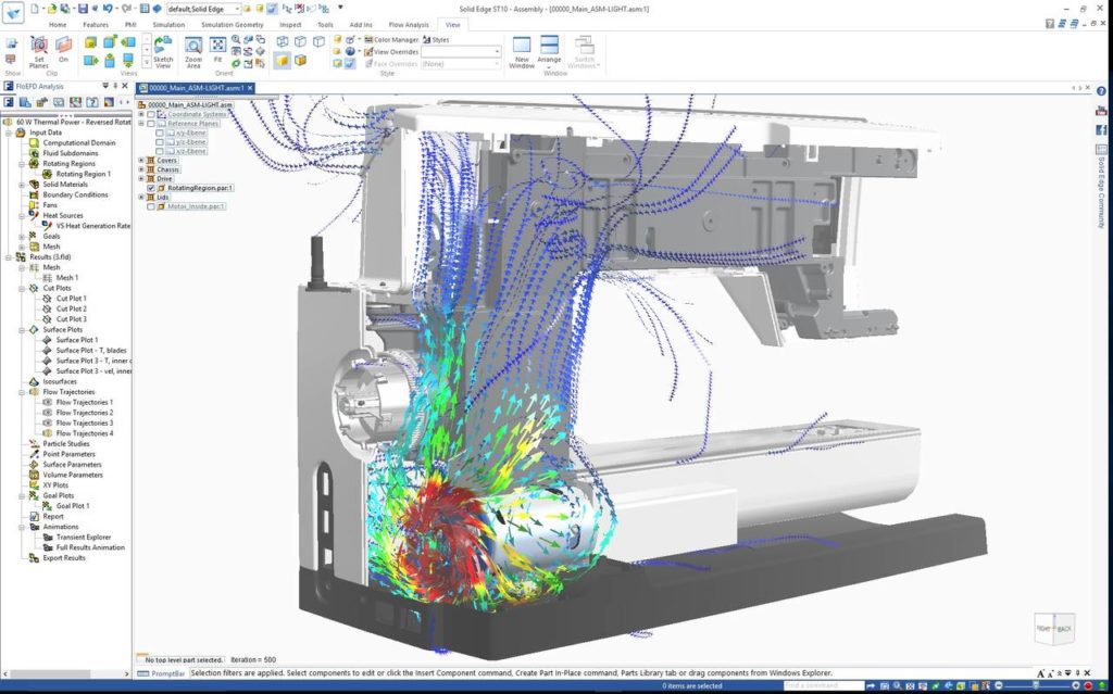 Nuove funzionalità di simulazione come l’analisi pienamente integrata dei flussi fluidi eliminano la necessità di scambiare dati fra diverse applicazioni, offrendo ai progettisti la possibilità di analizzare il flusso fluido e il trasferimento tecnico direttamente in Solid Edge, con rapidità e precisione.