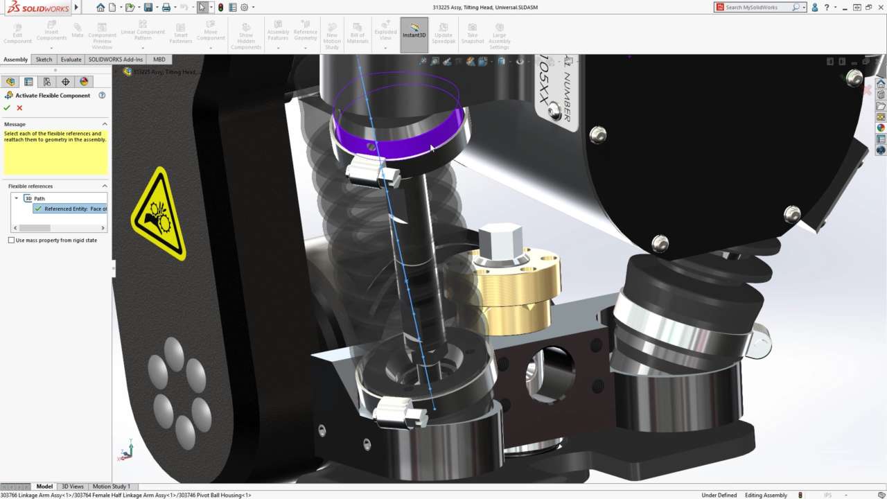 La Make Part Flexible è una nuova funzione che consente di visualizzare una stessa parte in diverse condizioni nello stesso assieme. Ad esempio, una molla è presente due volte nello stesso assieme, ma in due condizioni diverse: compressa e non compressa. Make Part Flexible è utile per diversi tipi di applicazioni come molle, soffietti, cerniere, o-ring e qualsiasi altra parte che si può flettere/piegare o che può cambiare stato/posizione/condizione.