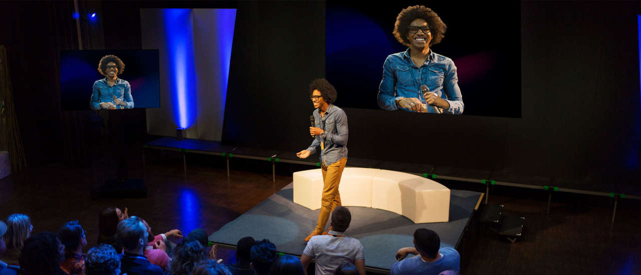 Grazie alla funzione di ritaglio dell’area di messa a fuoco, l’immagine di una telecamera può essere mostrata simultaneamente come due diverse immagini in uscita. Gli utenti possono vedere un’immagine panoramica in 4K e un’immagine ritagliata in HD. L’area ritagliata può essere selezionata come statica o come dinamica, per seguire i movimenti del presentatore. Questa funzionalità sarà resa disponibile tramite un futuro aggiornamento del software nel corso del 2019.
