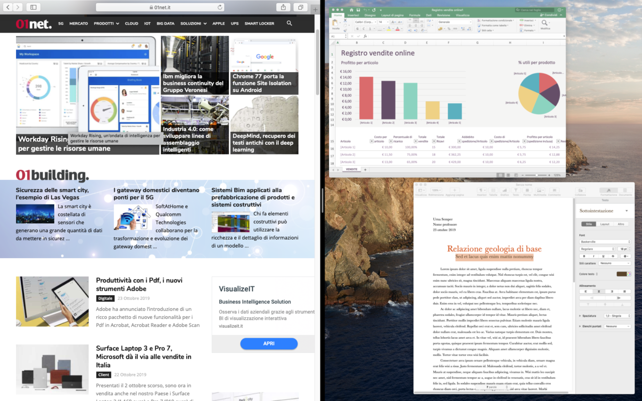 La modalità Split View in iPadOS è utile per sfruttare le funzioni di multitasking di iPad. Sul Mac, chiaramente, il multitasking è scontato, come per qualsiasi sistema operativo desktop. La funzione Split View può essere nondimeno molto utile come strumento di sistemazione e organizzazione delle finestre delle applicazioni nell’area di lavoro, affinché quest’ultima risulti ordinata e focalizzata.