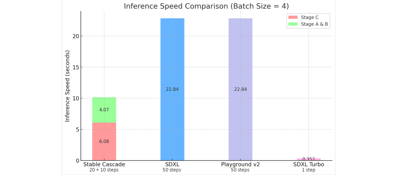 Stability AI Stable CascadeLa fase Latent Generator, Stage C, trasforma gli input dell’utente in latenti compatti 24×24 che vengono passai alla fase Latent Decoder (Stage A e B), utilizzata per comprimere le immagini, in modo simile al compito del VAE in Stable Diffusion, ma ottenendo una compressione molto più elevata.
