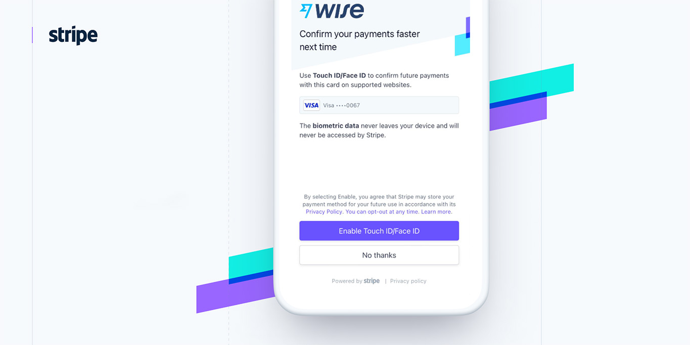 La funzione di autenticazione delegata incorpora l’autenticazione biometrica nel checkout dell’esercente, passando la responsabilità dell’autenticazione delle transazioni dagli emittenti delle carte a Stripe.