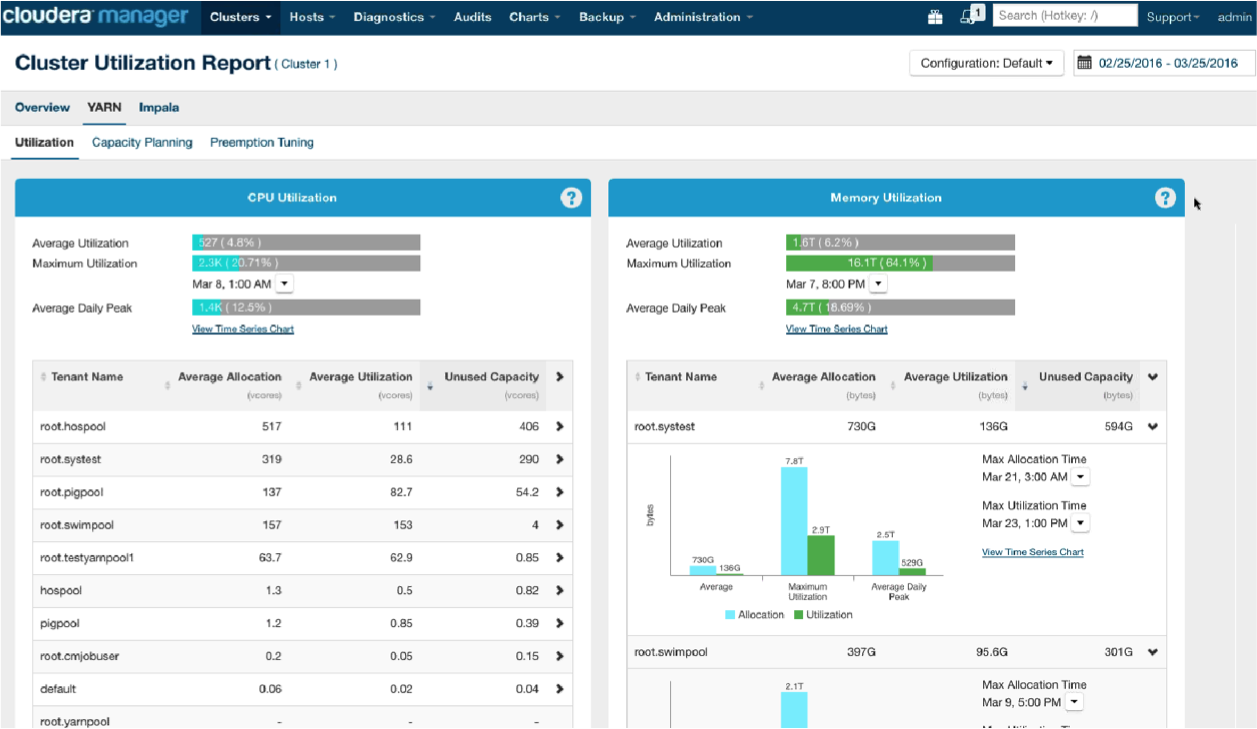Inoltre, la nuova funzionalità di reporting di utilizzo del cluster, incorporata in Cloudera Manager, promette operazioni efficienti e la corretta allocazione delle risorse tra gruppi e tipologie di carico di lavoro per risolvere le problematiche legate alle prestazioni di lavoro e alle query.