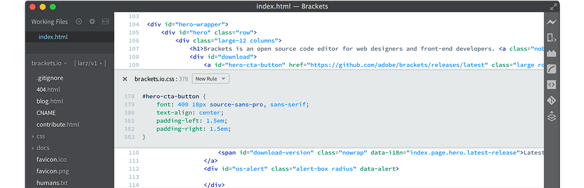 È una particolarità che condivide anche Brackets, un altro editor open source nato in Adobe proprio per lo sviluppo web. Supporta quindi molto bene JavaScript, HTML e CSS anche perché è con questi linguaggi che è stato creato e che si continua lo sviluppo (in Brackets). L’editor può contare su funzioni molto buone di autocompletamento del codice e su un modulo integrato per l’anteprima del codice HTML su cui si sta lavorando.