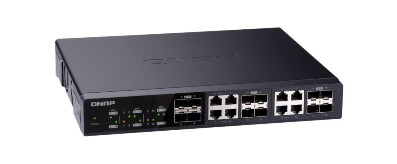 Lo switch QNAP QSW-1208-8C a 12 porte offre quattro porte SFP+ (fibra) e otto combinate SFP+/RJ45 (rame) per il collegamento di diverse interfacce sullo stesso switch. Dal canto suo, lo switch QSW-804-4C a 8 porte offre quattro porte SFP+ (fibra) e quattro combinate SFP+/RJ45. Con le interfacce RJ45, 10 GbE è supportato con i cavi Cat 6a (o successivi). In alternativa, il collegamento diretto dei cavi in rame (DAC) può essere usato con le porte SFP+ per il collegamento ai server all’interno del rack. La capacità di commutazione del QSW-1208-8C è 240 Gbps e quella del QSW-804-4C è 160 Gbps. Entrambi garantiscono perciò il potenziale completo di ciascuna porta.