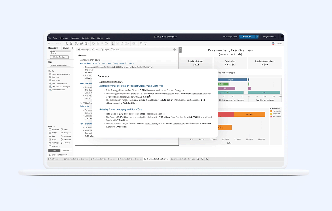 Data Stories aggiunge spiegazioni automatizzate in linguaggio naturale alle dashboard di Tableau su scala aiutando i clienti a comprendere e interagire con i dati più rapidamente.