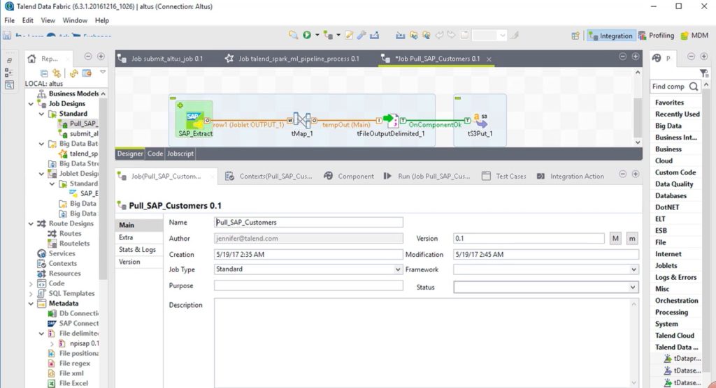 L’integrazione è a livello direttamente di Talend Studio ed è quindi interessante anche in ottica di sviluppo veloce: si definisce una pipeline di integrazione dati in ambiente Talend e questa viene “tradotta” da Altus in un cluster Hadoop che resta attivo solo per il tempo necessario.