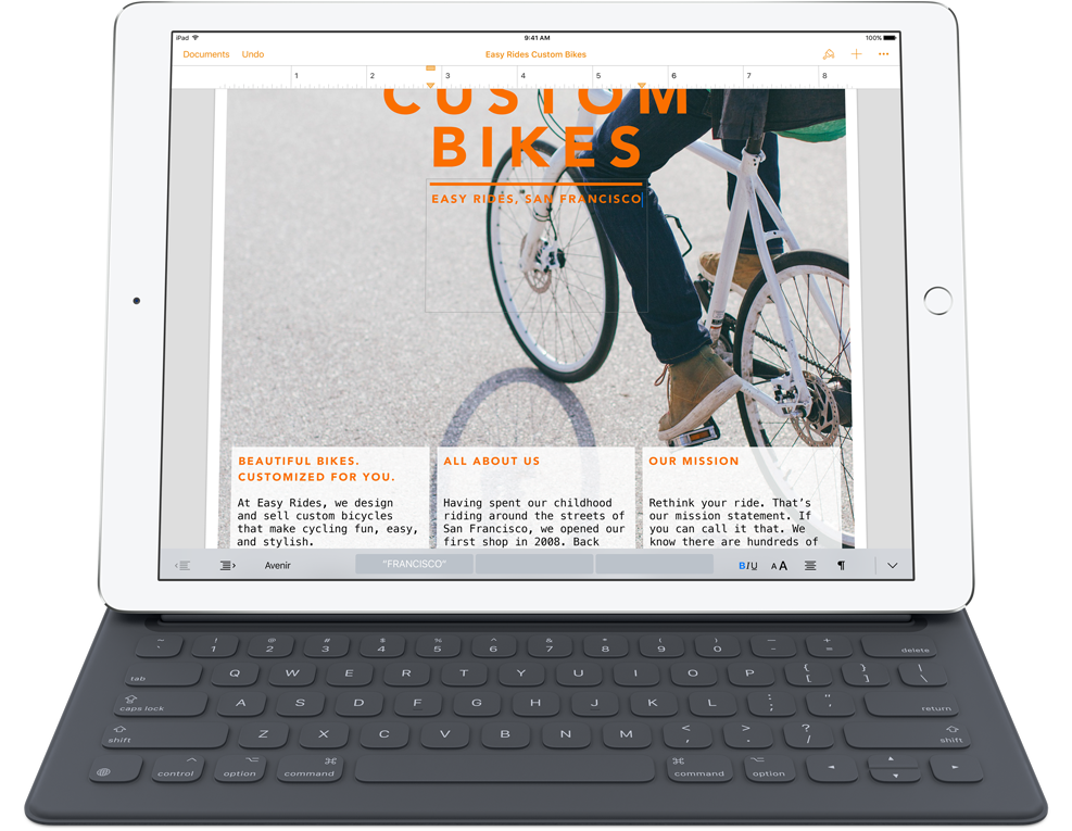 Quando si collega una tastiera Bluetooth all’iPad, la tastiera virtuale scompare automaticamente e questo libera una buona fetta del display lasciandolo a disposizione del documento su cui stiamo lavorando.