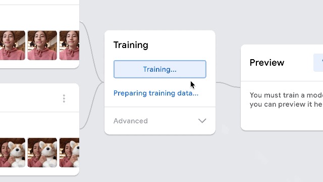 Basta poi il clic su un pulsante, per far sì che Teachable Machine esegua il training di un modello basato sugli esempi forniti. Anche in questo caso, tutto il training avviene nel browser e tutto rimane nel computer dell’utente, sottolinea ancora Google.