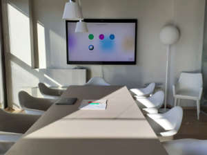 La soluzione Ricoh Creative Collaboration è ideale per la gestione dei meeting a 360°. Infatti, permette di visualizzare i meeting schedulati direttamente dalla schermata di benvenuto, di entrare in qualsiasi videoconferenza in un solo “click”, di presentare mediante qualsiasi device senza collegamento tramite cavo e di acquisire immagini e video. Integra inoltre un software dotato di numerose funzionalità e in grado di gestire ogni file nel suo formato originale. La soluzione include poi una applicazione per la collaborazione che, installata sui device personali, consente agli utenti di interagire da remoto condividendo i file presenti sul proprio laptop o dispositivo mobile.