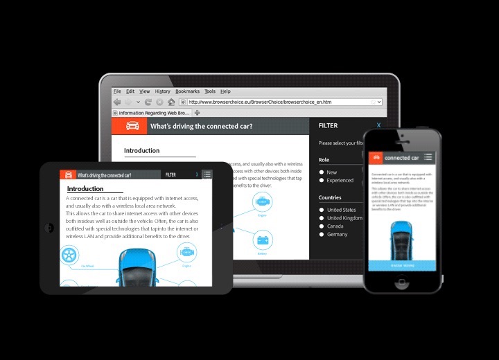 Adobe Technical Communication Suite è inoltre uno strumento che consente la pubblicazione multicanale di contenuti. L’ultima versione della suite semplifica ulteriormente la pubblicazione di contenuti che siano rintracciabili e fruibili su tutti i device. Contenuti tecnici che possano risultare anche accattivanti e integrabili nelle piattaforme social.