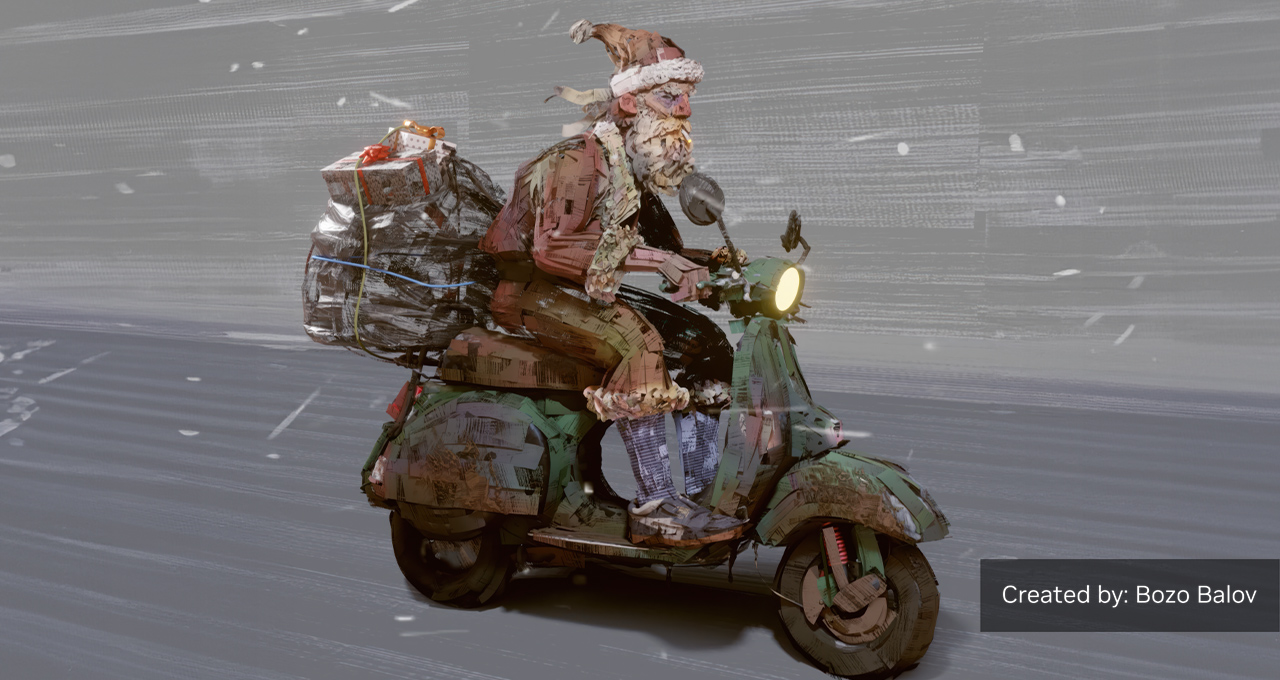 Protagonista di un altro case study è il talentuoso artista 3D Božo Balov, che ha condiviso la sua creazione natalizia, Christmas Rush, ovvero un’animazione 3D di un Babbo Natale croato, ma con un twist meno gioioso.