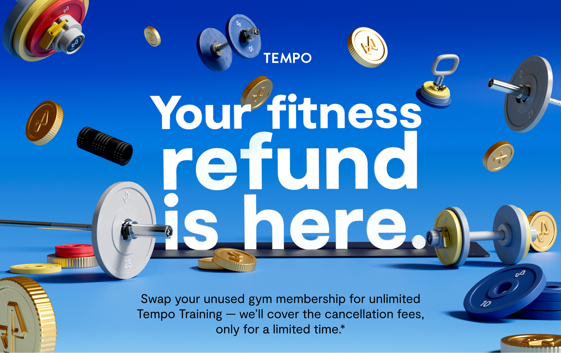 From April 2-15, consumers who sign up for Tempo Training will receive a refund equivalent to the average gym cancellation fee – $70.