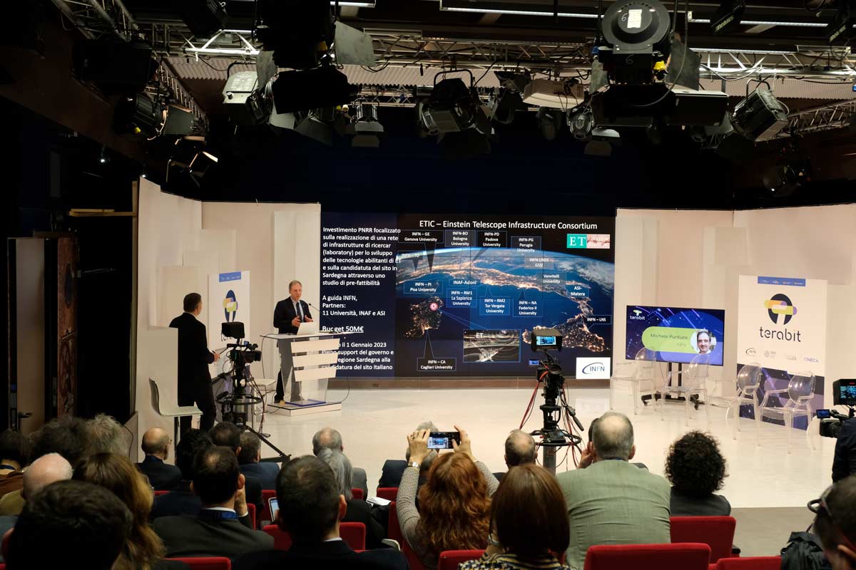 L’infrastruttura realizzata da TeRABIT sarà funzionale anche a sostenere la candidatura della Sardegna a ospitare l’Einstein Telescope, il progetto europeo per un interferometro di terza generazione per la rivelazione delle onde gravitazionali. Questa grande infrastruttura di ricerca internazionale produrrà grandi quantità di dati che dovranno essere condivisi con una comunità scientifica distribuita su tutto il pianeta e l’interconnessione ultraveloce del sito di Sos Enattos, candidato a ospitarla, rappresenta un elemento cruciale.
