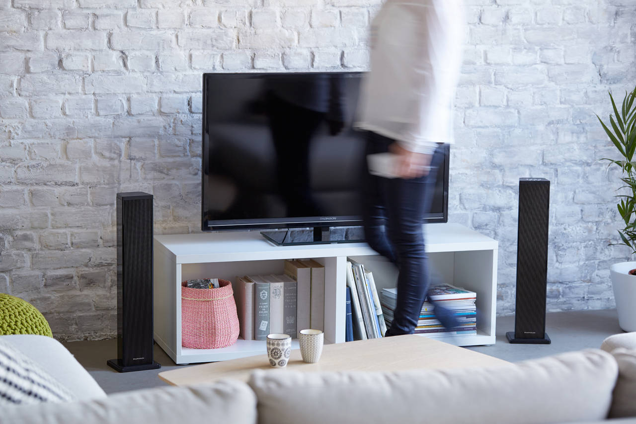 Il sistema stereo Bluetooth Thomson DS60DUO è pensato per essere connesso al televisore mediante un semplice cavo RCA oppure per essere utilizzato come impianto di riproduzione wireless per smartphone e tablet, attraverso la funzionalità Bluetooth. Al secondo speaker il suono viene trasmesso sfruttando la stessa tecnologia Bluetooth, senza dover ricorrere a cavi per la connessione.