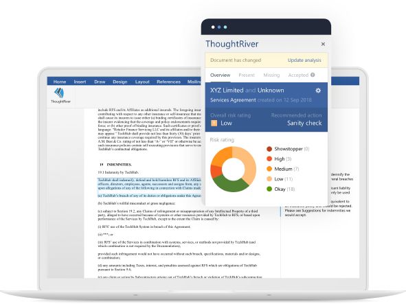 Il sistema di revisione automatica dei contratti di ThoughtRiver ha l’obiettivo, pertanto, di accelerare questo processo mediante una verifica del contratto, rispondendo a domande legali chiave e quindi fornendo consigli dettagliati e guidando gli utenti attraverso la fase di remediation all’interno di Microsoft Word.
