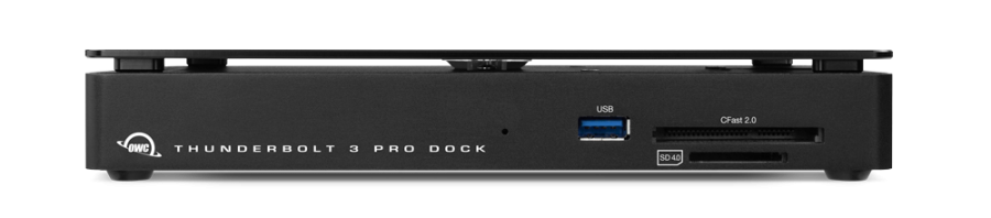 Thunderbolt 3 Pro Dock di OWCPer le postazioni di produzione e post-produzione, Thunderbolt 3 Pro Dock di OWC presenta una combinazione di funzionalità tra cui: Ethernet 10Gb, lettori di schede CFast e SD, due porte Thunderbolt 3, tre porte USB 3.1 e supporto per dispositivi e unità eSATA.