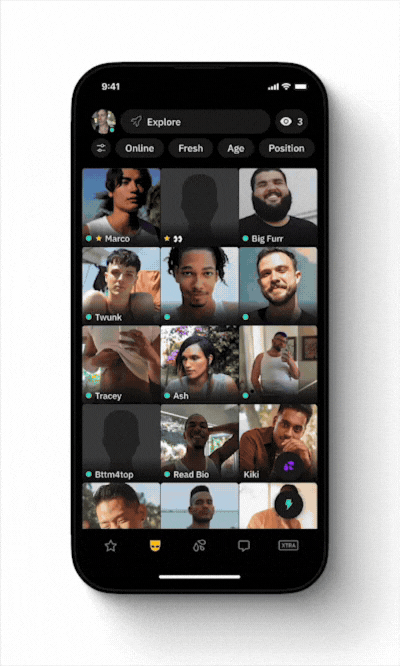 Right Now è un feed in tempo reale – separato dalla rete principale dell’app che visualizza profili – grazie al quale un utente Grindr può postare messaggi di testo e condividere foto che rimangono visualizzate per un’ora, per far sapere ad altri utenti con gli stessi gusti esattamente quali sono le sue intenzioni.