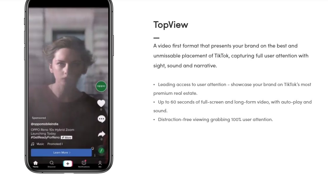 Al momento del lancio, il sito includerà l’accesso ai formati di annunci TikTok incluso  TopView, che è l’annuncio che viene visualizzato quando si avvia per la prima volta l’applicazione TikTok.