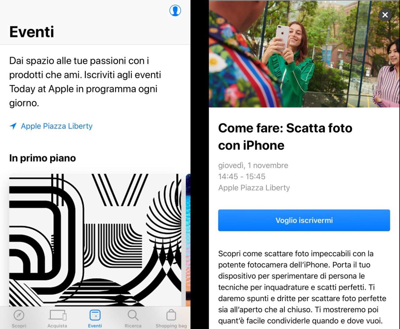 Today at AppleNell’app iOS Apple Store, è presente il nuovo tab Eventi che consente di visualizzare la programmazione con un semplice tocco. È possibile ricercare le sessioni negli Apple Store nelle vicinanze, rispetto alla propria posizione. Oppure ricercare uno specifico Apple Store per nome, CAP o città.