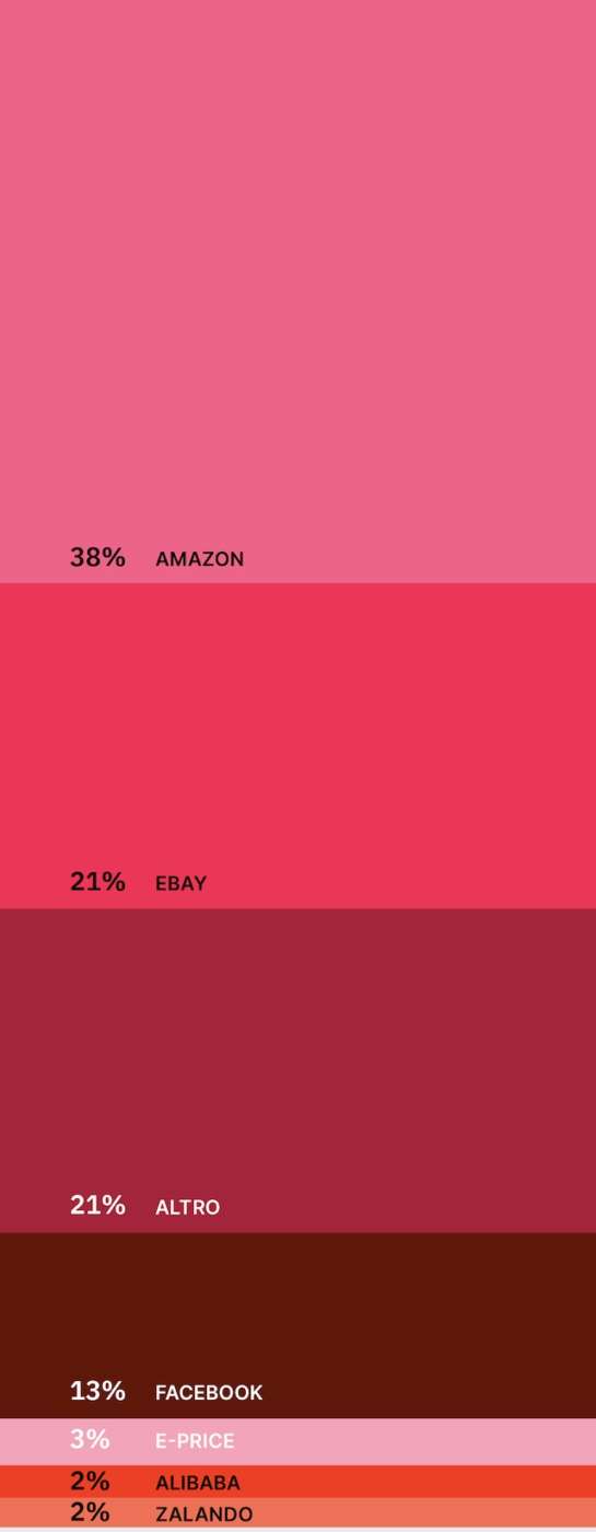 Amazon è il marketplace più utilizzato dalle realtà italiane, seguito da Ebay e Facebook Marketplace.