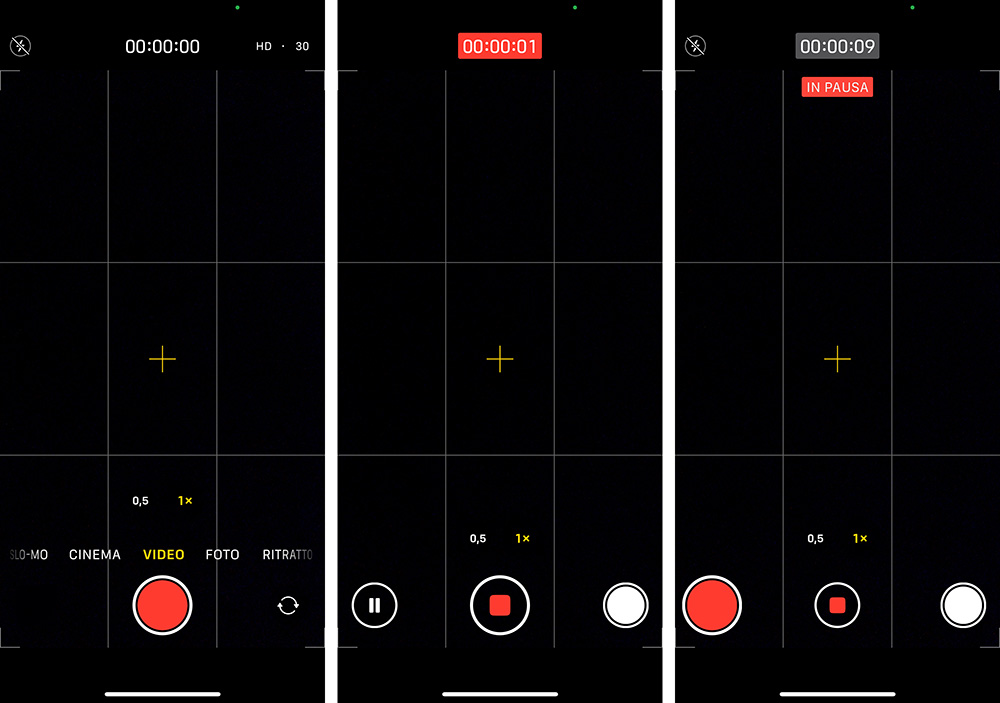 Nell’app Fotocamera di iPhone, dunque, selezioniamo la modalità Video e avviamo la registrazione del video con un tocco sul pulsante Registra (quello rosso in basso al centro). Per interrompere del tutto la registrazione, siamo abituati a toccare di nuovo il pulsante Registra (che ora ha un’icona diversa).