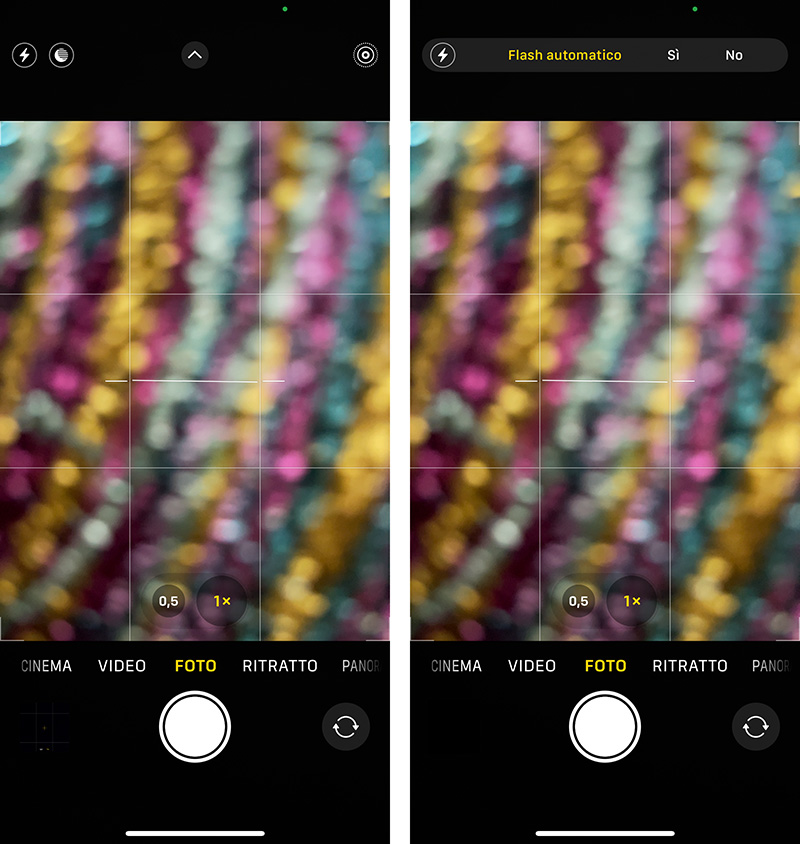 Per il resto, l’icona del flash funziona ancora allo stesso modo: un singolo tocco consente di attivare o disattivare il flash automatico; mentre toccando il pulsante Controlli fotocamera al centro sopra il riquadro di anteprima dell’inquadratura, possiamo selezionare il flash tra i controlli e accedere, anche da lì, a tutte le sue impostazioni.