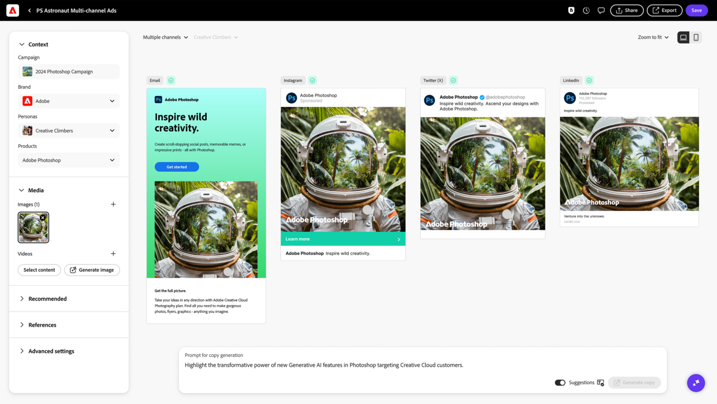 “Le marche e le agenzie più importanti del mondo stanno collaborando con Adobe per accelerare la loro content supply chain, in linea con il mandato di aumentare l’efficienza delle loro organizzazioni“, ha dichiarato Eric Hall, Chief Marketing Officer di Adobe Experience Cloud. “Adobe è in una posizione unica per combinare le migliori applicazioni della categoria in Adobe Experience Cloud e Adobe Creative Cloud con l’IA generativa integrata in modo nativo per i team, per aumentare la produttività e offrire una personalizzazione su scala“.