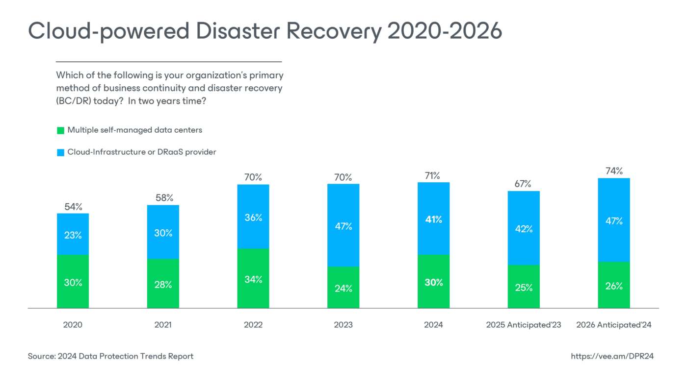 Gli intervistati ritengono che gli attacchi informatici rimangono la causa principale delle interruzioni e che, sebbene le organizzazioni stiano ponendo maggiore enfasi sull’utilizzo del cloud per i recuperi più importanti, solo una ristretta percentuale ritiene di essere in grado di recuperare anche una piccola crisi in meno di una settimana.