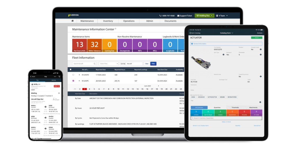 Powered by Veryon's open API architecture, these integrations allow maintenance tracking, scheduling, and operational systems to share data seamlessly, eliminating rework, increasing reliability, and reducing the time it takes to go from maintenance sign-off to wheels up.