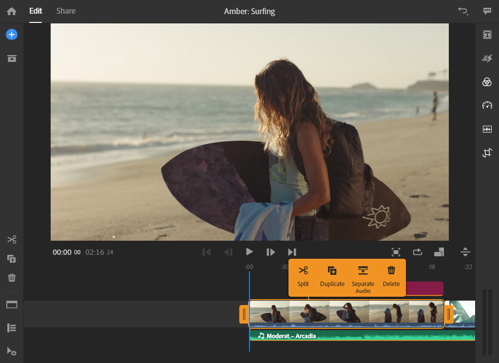 Sempre in Premiere Rush, su iOS e Android è possibile usare la funzione Ripristina per colore, audio e trasformazioni per resettare tutte le regolazioni. Su desktop la funzione Ripristina per il colore permette di resettare le regolazioni del colore.