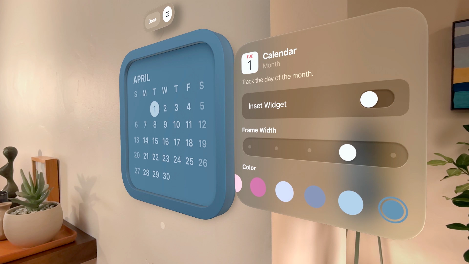 I widget offrono a colpo d’occhio informazioni utili e personalizzate in tutto l’ecosistema Apple. Con visionOS 26, diventano spaziali e si integrano perfettamente nello spazio dell’utente, che li ritrova ogni volta che indossa Apple Vision Pro. I widget su visionOS 26 possono essere personalizzati con tante diverse opzioni per la larghezza della cornice, il colore e la profondità. Nuovi e splendidi widget, fra cui Orologio, Meteo, Musica, e Foto, offrono interazioni ed esperienze uniche.