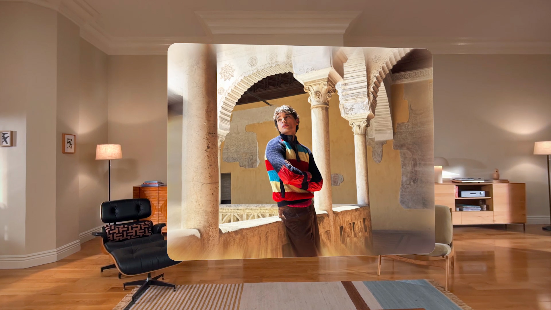 Con visionOS 26, le foto spaziali diventano ancora più realistiche. Il sistema sfrutta un nuovo algoritmo di intelligenza artificiale generativa e la profondità computazionale per creare scene con diverse prospettive, dando all’utente l’impressione di potersi sporgere e guardare intorno.