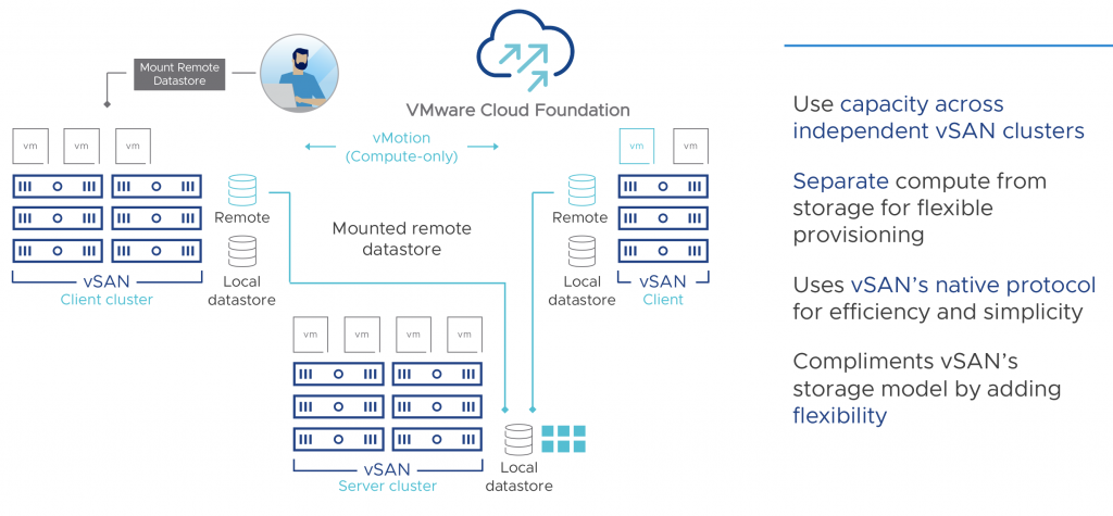 La nuova release di VMware Cloud Foundation offre ampi miglioramenti alla piattaforma, introducendo nuove funzionalità per supportare ulteriormente i clienti a fornire agli sviluppatori un’infrastruttura pronta all’uso, offrendo scalabilità senza compromessi e semplificando le operations. La nuova release include una piattaforma vSAN Data Persistence: gestione storage S3-compatible per i dati non strutturati con la piattaforma HCI leader del settore attraverso il supporto delle offerte Cloudian e MinIO. vSAN HCI Mesh: approccio basato su software per la disaggregazione delle risorse di calcolo e di storage.