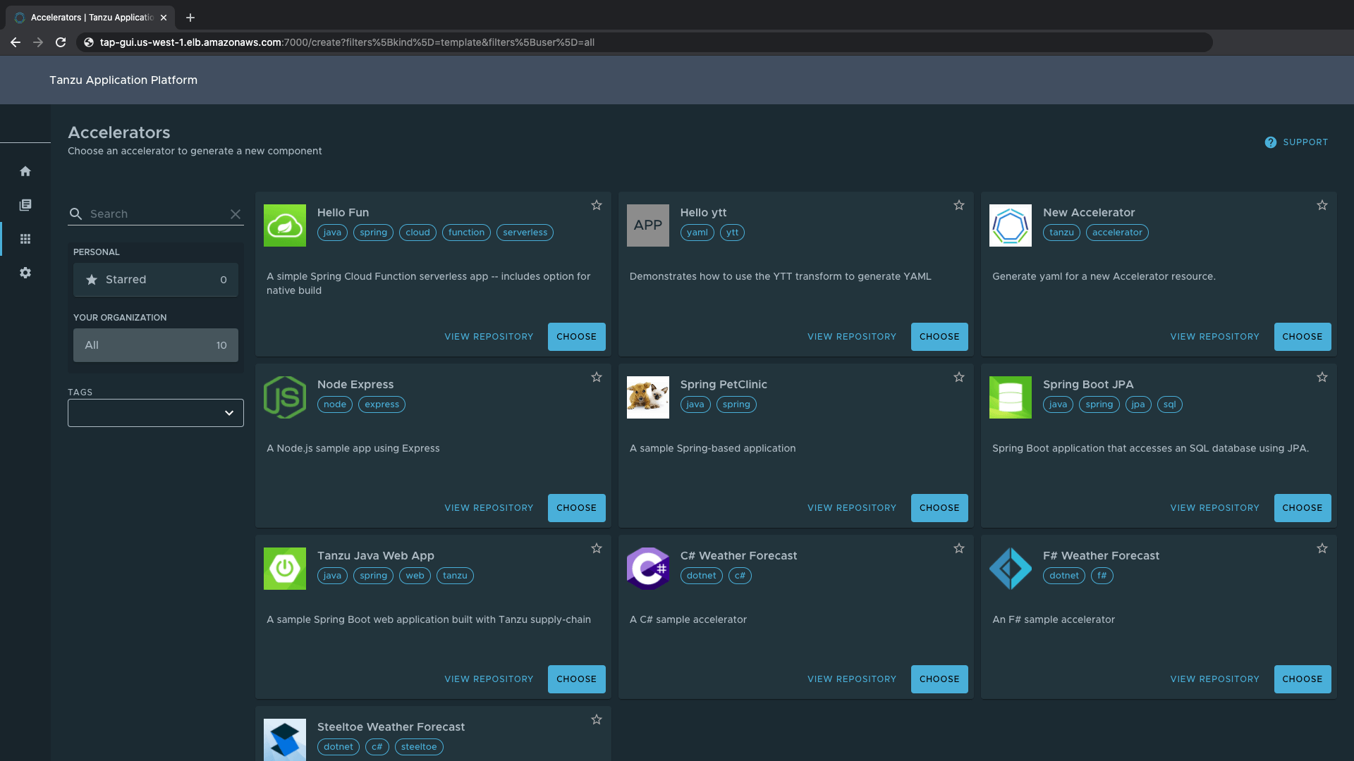 La personalizzazione delle fasi della supply chain con l’integrazione di Tekton è più semplice. Tanzu Application Platform aiuta le organizzazioni a creare percorsi sicuri verso la produzione, fornendo impostazioni predefinite e strumenti di supporto già adottati dai team. È possibile aggiungere step personalizzati nel percorso verso la produzione grazie al supporto di prima classe per le attività Tekton personalizzate in Supply Chain Choreographer. È inoltre possibile creare un task per eseguire qualsiasi azione necessaria, oppure utilizzare un task già esistente dall’ecosistema Tekton Hub.