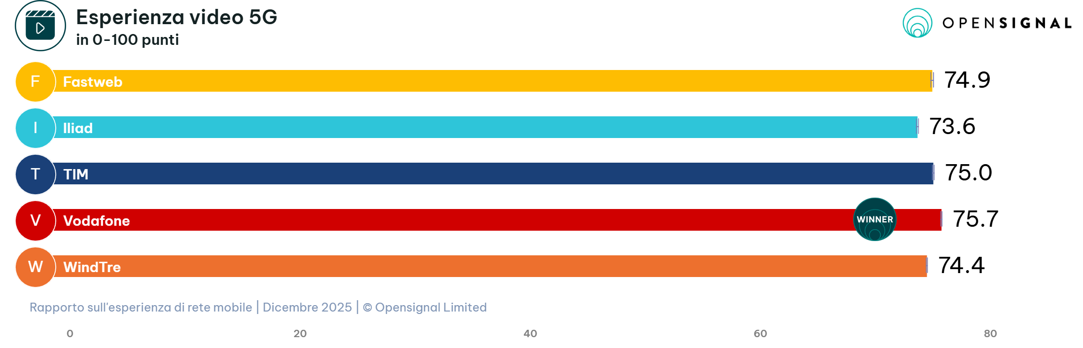 Vodafone vince inoltre il premio 5G Video Experience con 75,7 punti e il 5G Games Experience con 81,7 punti, dimostrando come le prestazioni non si limitino alla pura velocità, ma si traducano in una migliore fruizione di contenuti video e di applicazioni interattive ad alta intensità di rete.