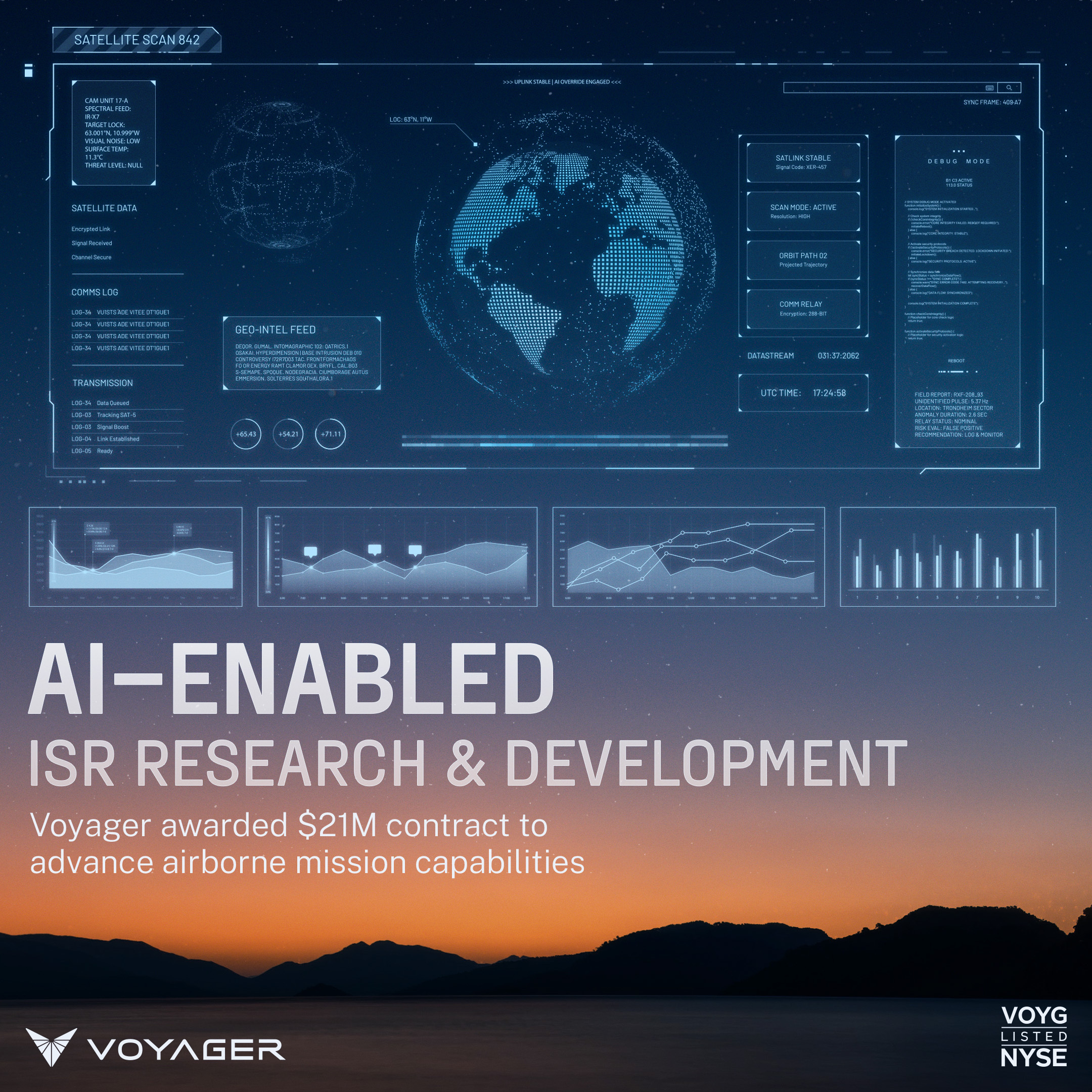 DENVER--(BUSINESS WIRE)--$VOYG #MissionReady--Voyager Technologies, Inc. [NYSE: VOYG] is on contract with the Air Force Research Laboratory under a $21 million contract to develop AI-enabled next-generation intelligence, surveillance and reconnaissance systems.