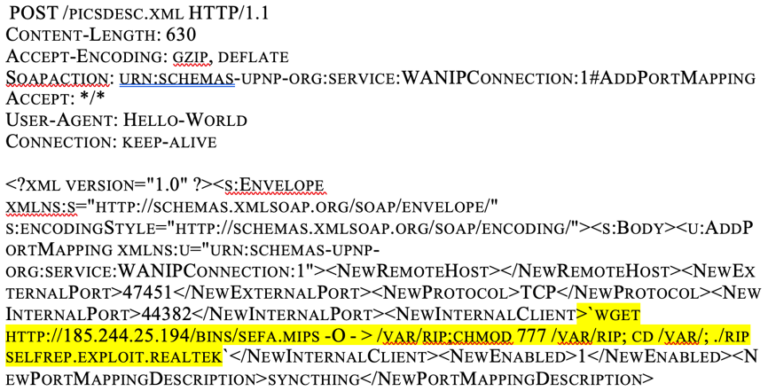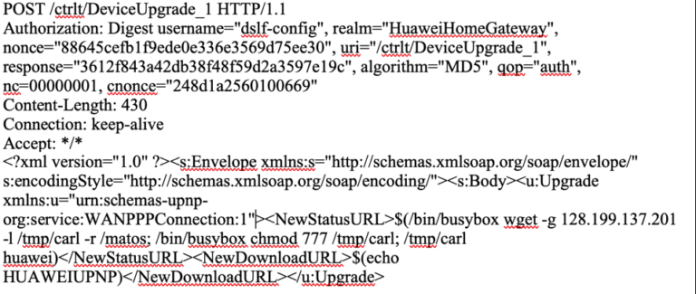 CVE-2017-17215 è stata impiegata anche in numerosi botnet IoT di alto profilo. Tale vulnerabilità è stata resa pubblica nel dicembre 2017 con un’attività di ricerca pubblicata su exploit-db il 25 dicembre 2017.
