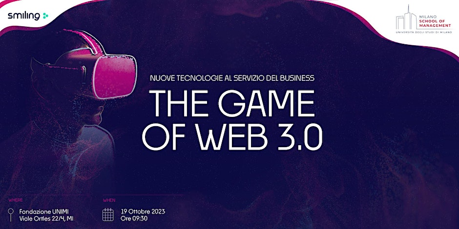 Giovedì 19 ottobre 2023 la sede di Fondazione UNIMI ospiterà a partire dalle ore 09:30 The Game of Web 3.0 – Nuove tecnologie al servizio del business, conferenza organizzata da Milano School of Management (MISOM) in collaborazione con Smiling e dedicata all’impatto sul business e sulle professioni del Web 3.0.