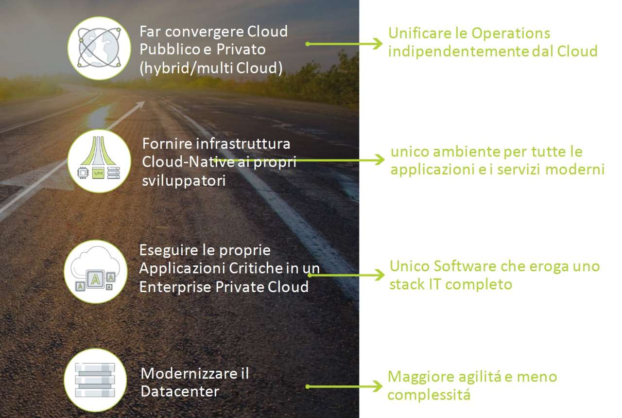 Questa trasformazione verte quindi su quattro fasi: modernizzare il datacenter, automatizzare le proprie azioni, imparare a essere agili nello scegliere le risorse, far convergere l’infrastruttura e l’azienda nel cloud.