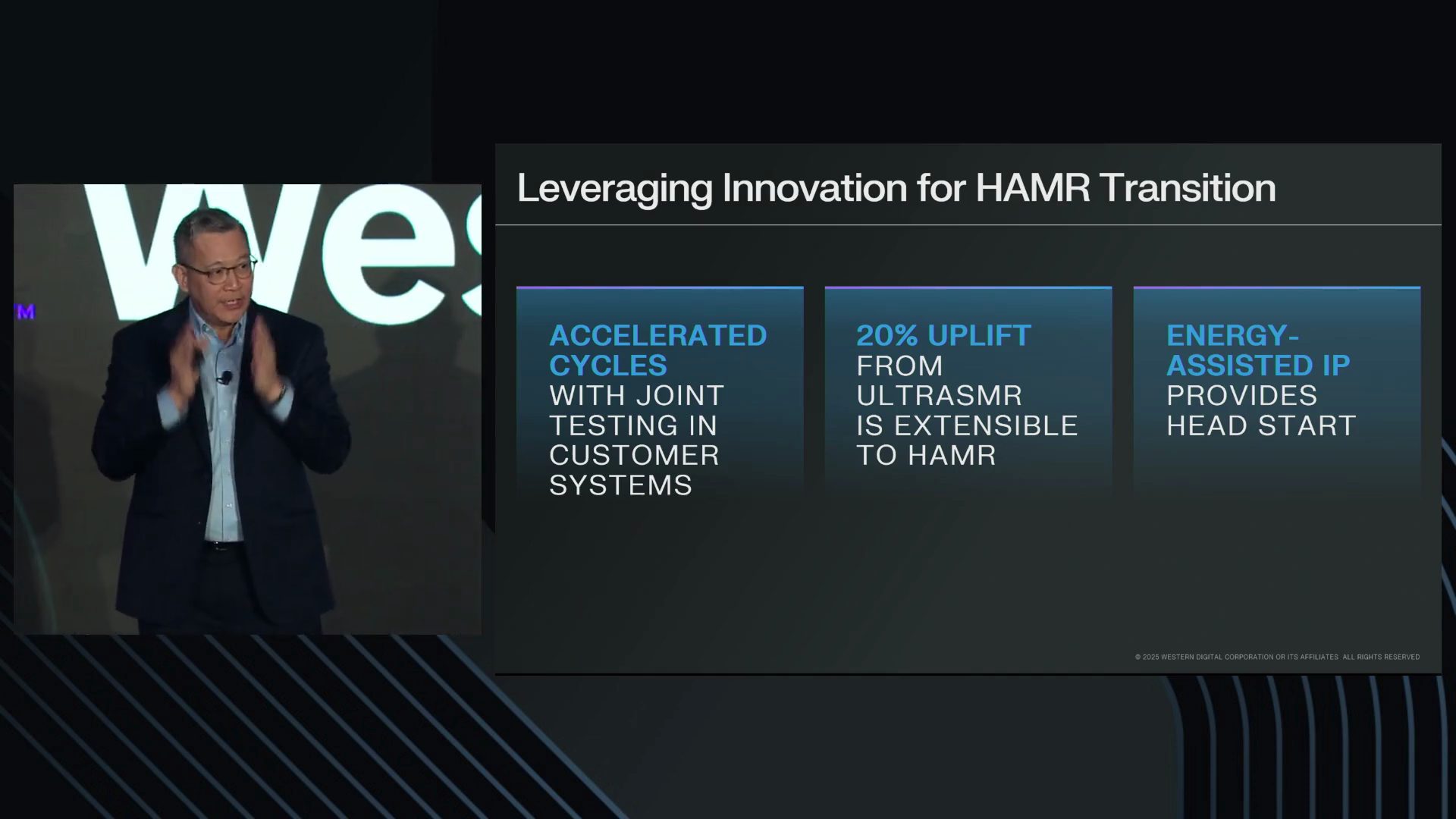 Per rispondere alla domanda attuale e futura, Tan ha annunciato un’accelerazione nello sviluppo della tecnologia HAMR da parte dell’azienda, con test già in corso presso due importanti clienti hyperscaler. Grazie al portafoglio diversificato di soluzioni scalabili che integra le tecnologie ePMR e UltraSMR, e con UltraSMR che si estende all’HAMR, Western Digital permette ai clienti di pianificare con una visione a lungo termine sfruttando le attuali opportunità di espansione della capacità di archiviazione. Questo approccio assicura una transizione economica prevedibile e scalabile, consentendo ai clienti di massimizzare il valore con l’evoluzione dei loro ambienti di data center.