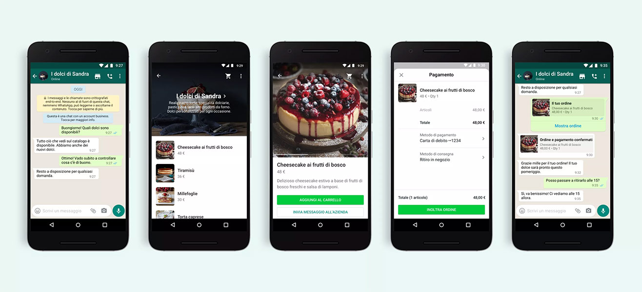 Facebook ha anche pubblicato un video che illustra la sua visione sulla user experience che la messaggistica di un’azienda dovrebbe offrire agli utenti in WhatsApp, con la possibilità di sfogliare il catalogo di un negozio in una chat, aggiungere un articolo al carrello, effettuare l’ordine e ottenere risposte rapide alle domande: il futuro della messaggistica business.