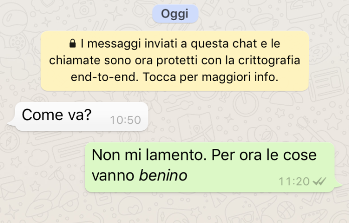 Qualcosa di semplice però si può fare dall’interno dell’app tradizionale. Non è molto pubblicizzato, infatti, ma WhatsApp supporta una gestione base degli stili di testo. L’approccio è sostanzialmente quello del linguaggio Markdown: il testo in grassetto va inserito tra due asterischi, quello in corsivo tra due trattini bassi, lo strikethrough tra due simboli tilde.
