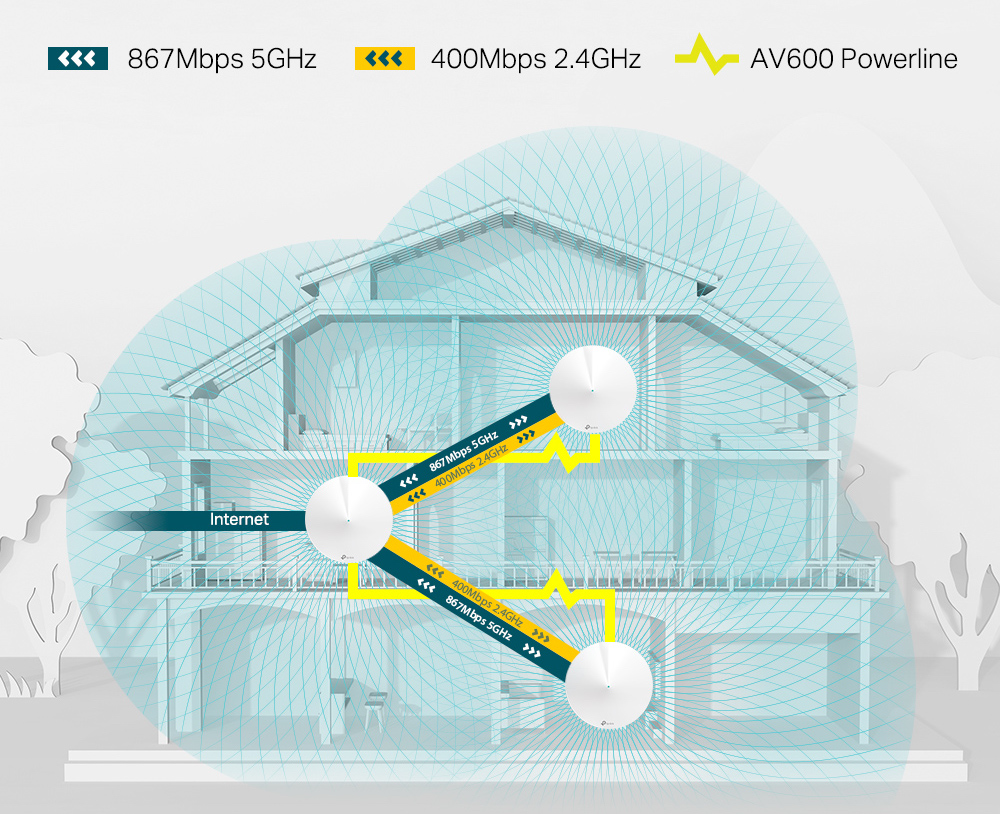 Il Deco P7 introduce la tecnologia Hybrid Mesh. Questa permette la creazione di una rete Wi-Fi anche in aree non raggiungibili con il Wi-Fi mesh puro. Ad esempio in ambienti quali garage, edifici storici con muri spessi o palazzi moderni con pareti schermate. Ciò è reso possibile grazie all’aggiunta del supporto Powerline che sfrutta l’impianto elettrico come un cavo di rete.